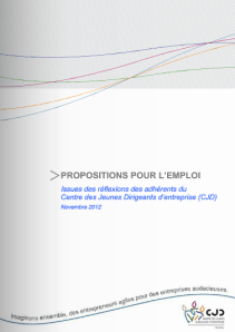 • Les seniors. Le CJD défend une solution moins coûteuse et plus efficace que le contrat de génération : l’exonération des charges patronales pendant douze mois pour le recrutement en CDI de personnes de plus de 55 ans et inscrites au chômage depuis 9 mois révolus. Ce dispositif serait réservé aux TPE-PME qui créent un nouveau poste…